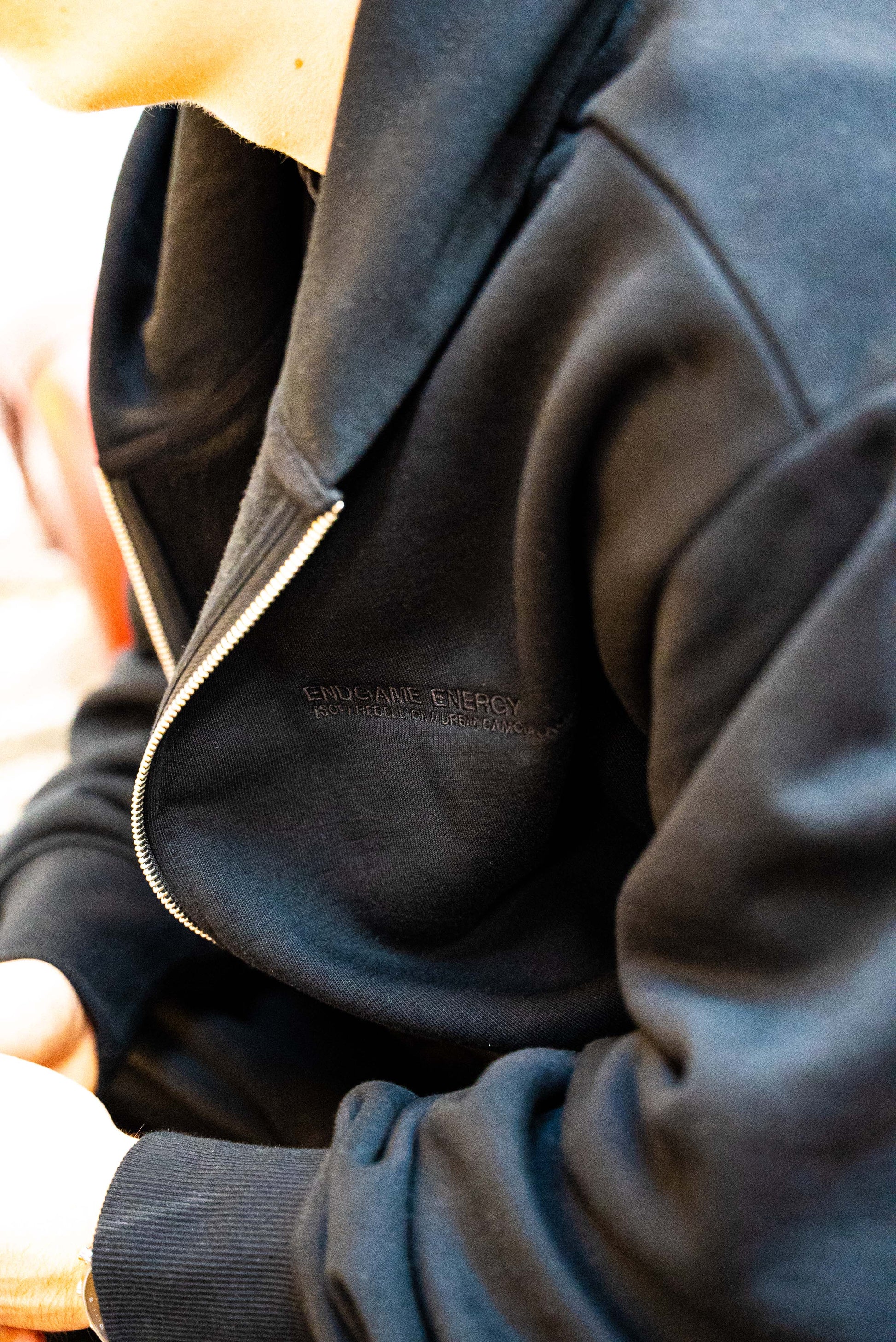 A premium quality hoodie built with intention. This dual-zip design features a two-stage shiny chrome zipper system that can be opened top or bottom, offering you airflow, variation and attitude in how you wear it. On the chest, a subtle embroidered message sits quietly. On the lower back, a large ‘Stealth’ black graffiti piece is carefully stitched into the fabric – tonal, hidden, until the light finds it. Mid-weight, high-quality cotton. Relaxed Fit. Designed to move with you, understatedly stylish with zero compromise.