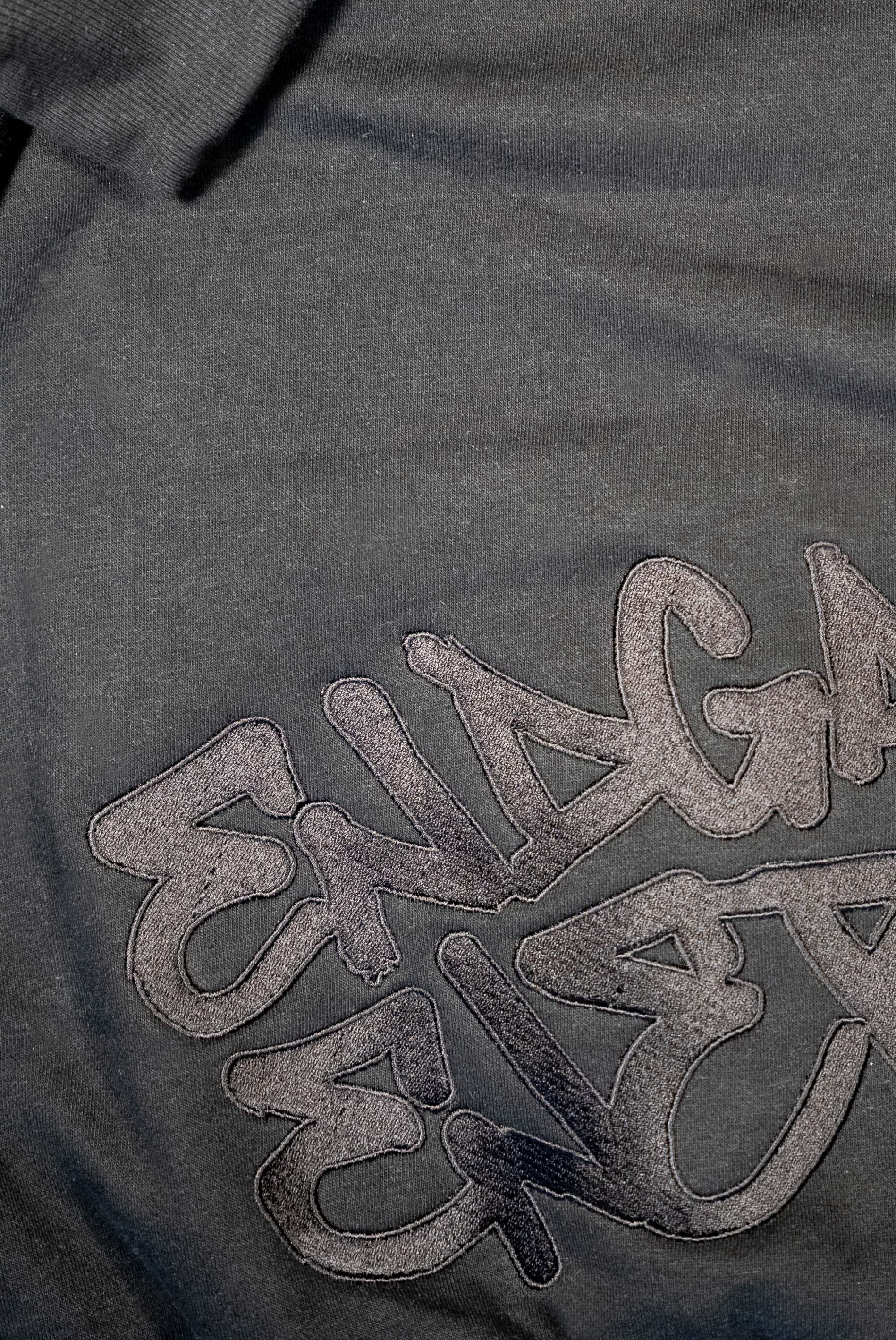 Black ‘Stealth’ Zipless Hoodie (Embroidered Graffiti)