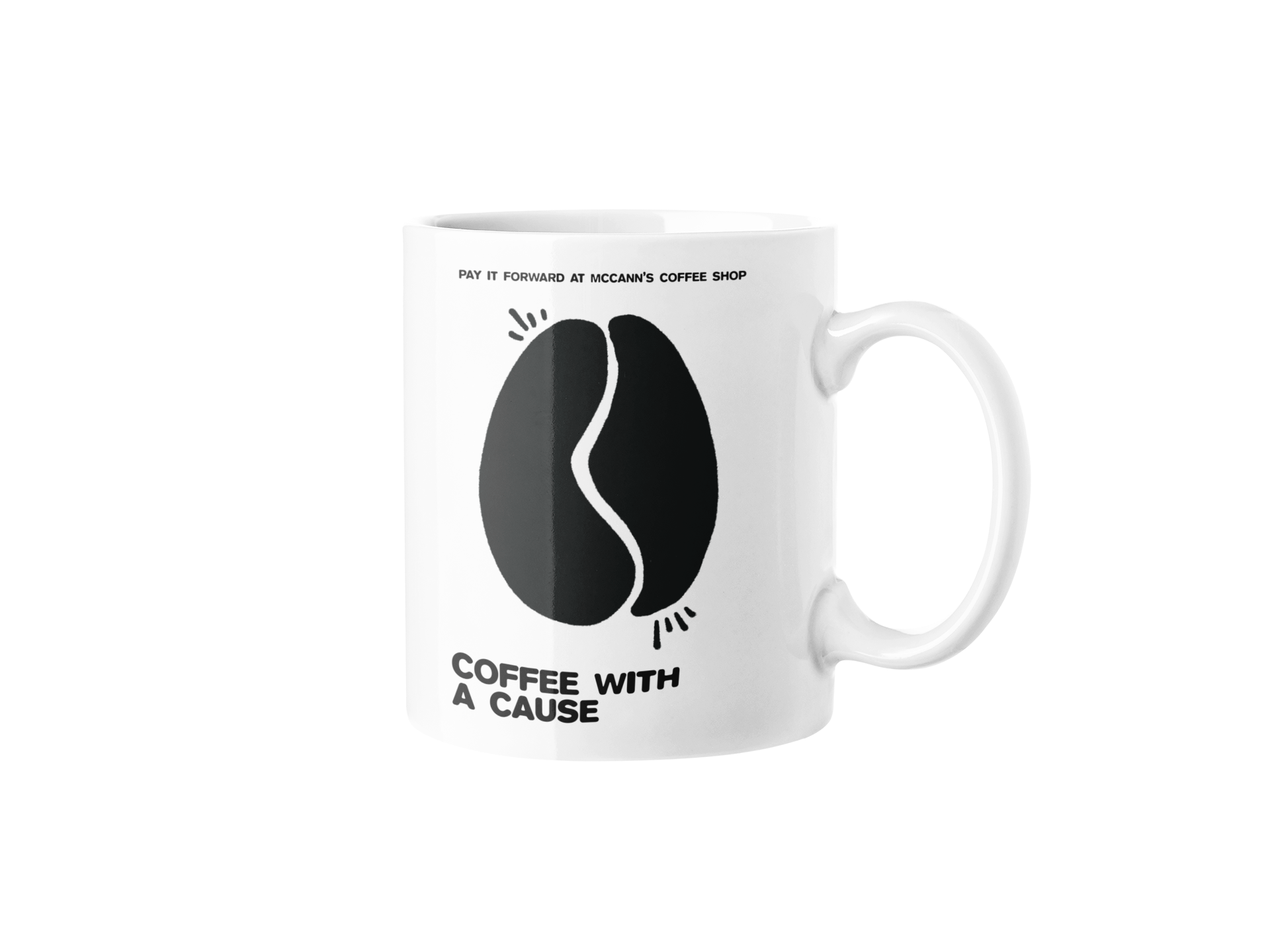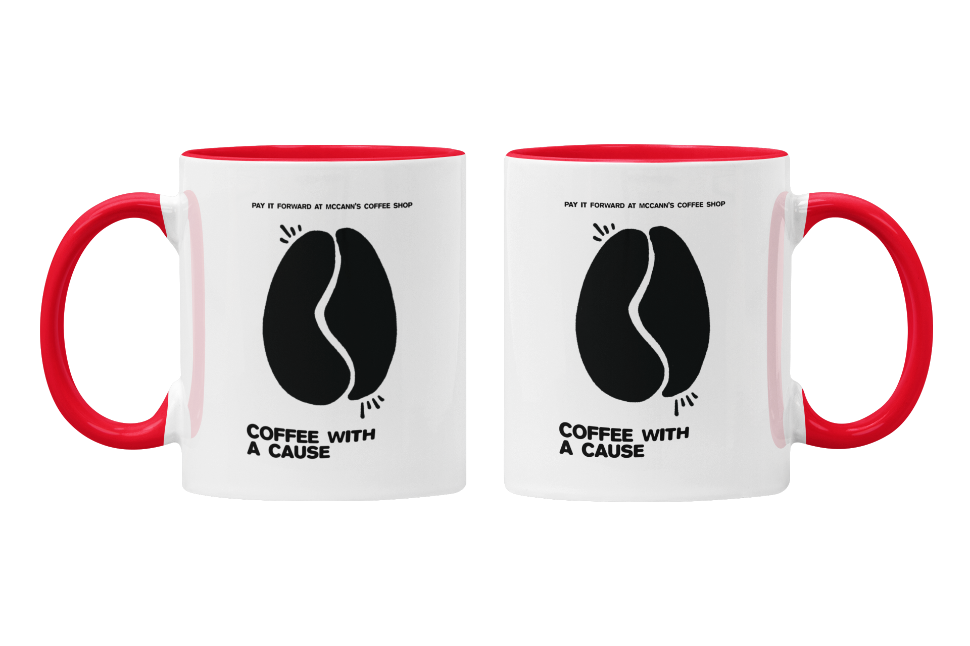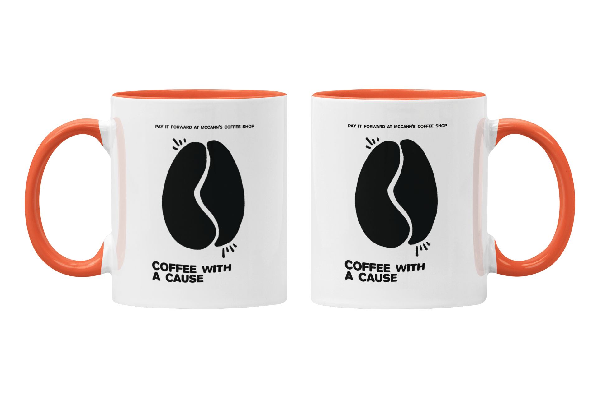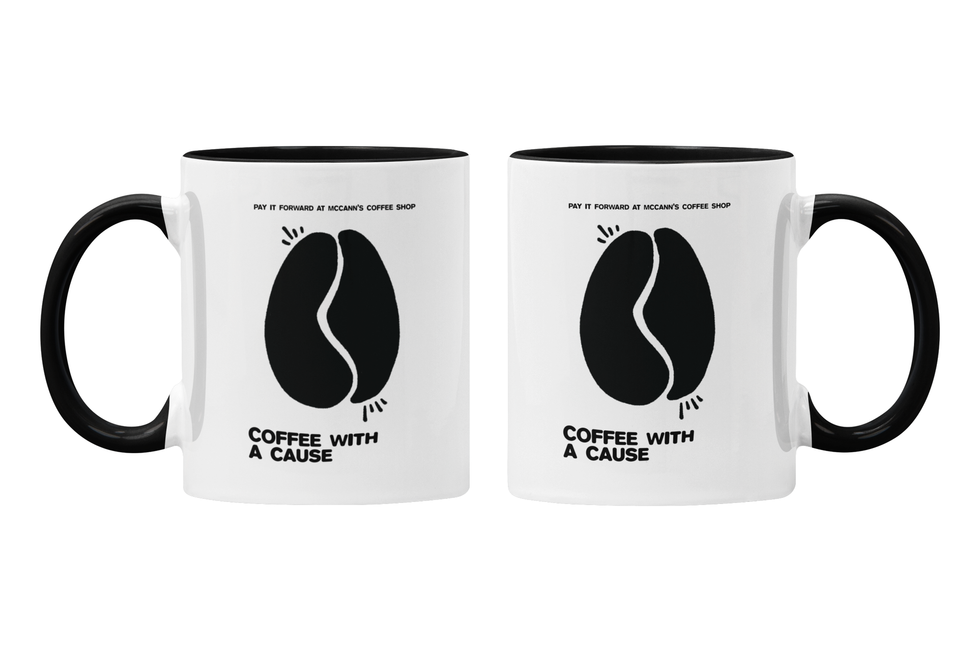 Get your day started on the right foot with the "Meals with Max - Coffee Bean" Mug. This coffee mug features a sketch of a coffee bean for McCann's coffee shop in Newbury. It's the perfect addition to your morning routine or a great gift for any coffee lover!