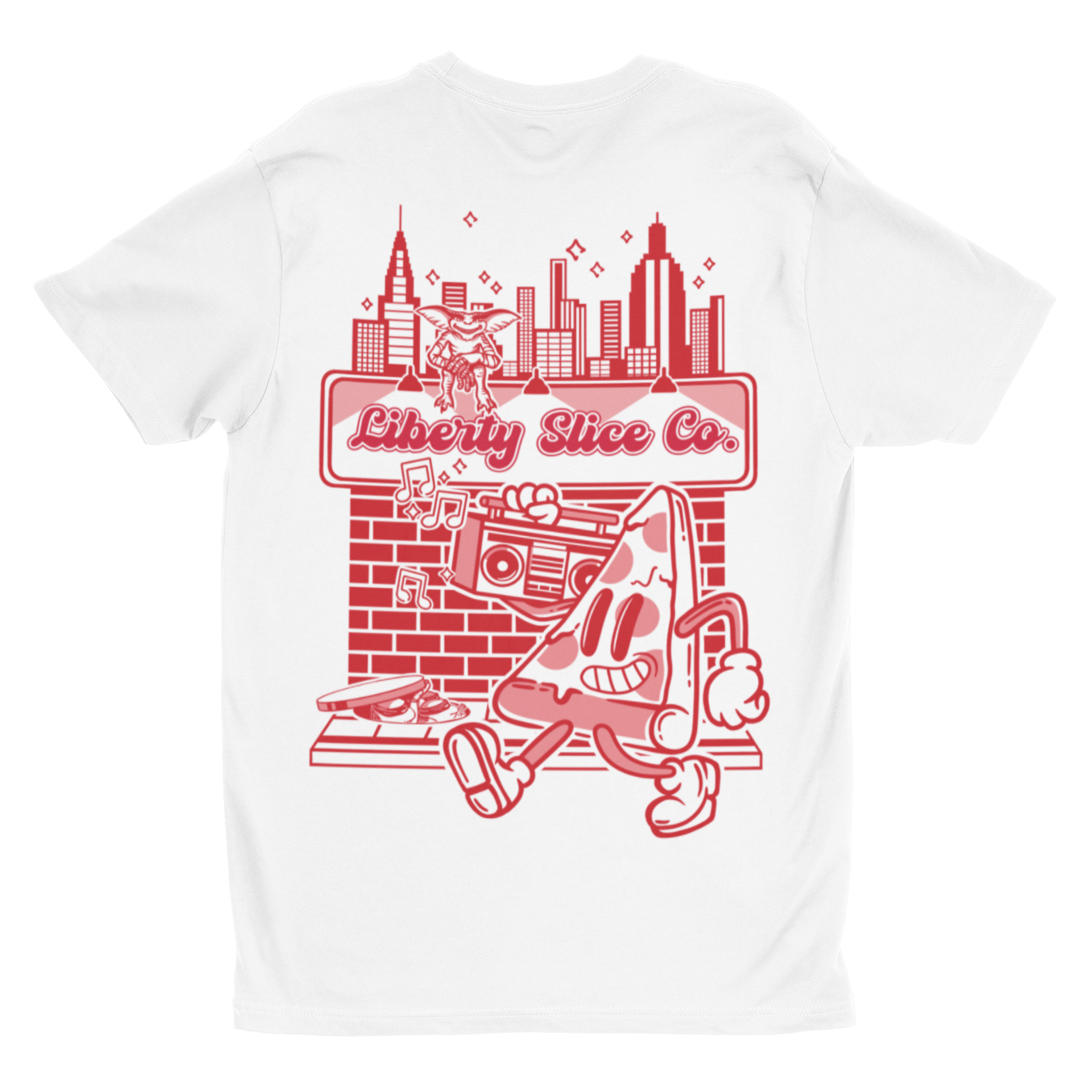 Show your love for New York-style pizza with the Liberty Slice Logo T-shirt, crafted especially for our Lincoln-based pizza shop. This playful tee features a bold logo that captures the spirit of classic New York slices, making it perfect for pizza fans who want to wear their cravings proudly. Comfortable and stylish, it’s a fun way to celebrate your favourite slice wherever you go.