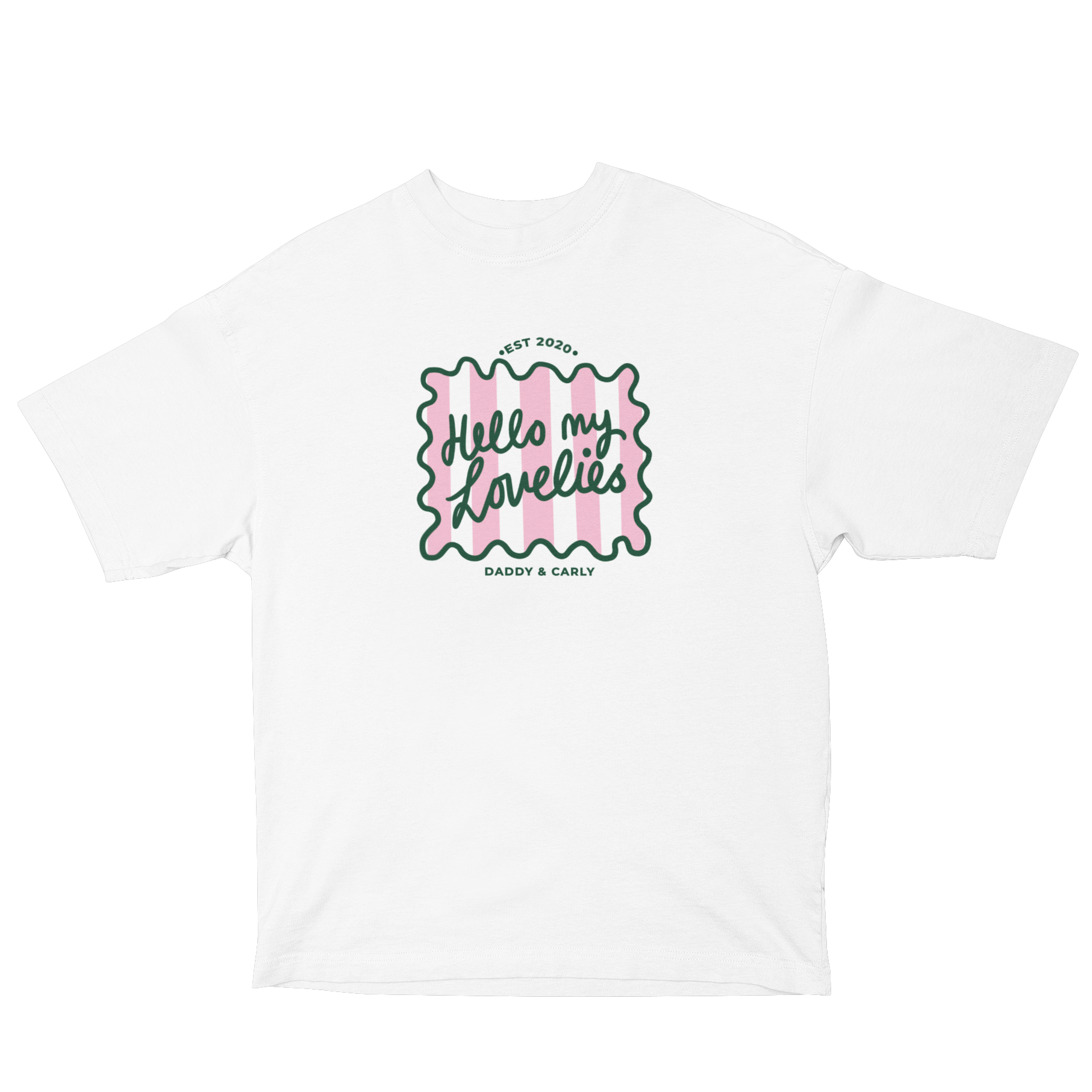 Celebrate the iconic catchphrase with this Boxy Shorter tee, featuring bold stripes and the beloved "hello my lovelies" slogan. Perfect for fans who want to spread warmth and positivity wherever they go. Crafted for comfort and style, this playful piece brings a smile to everyone who spots it.