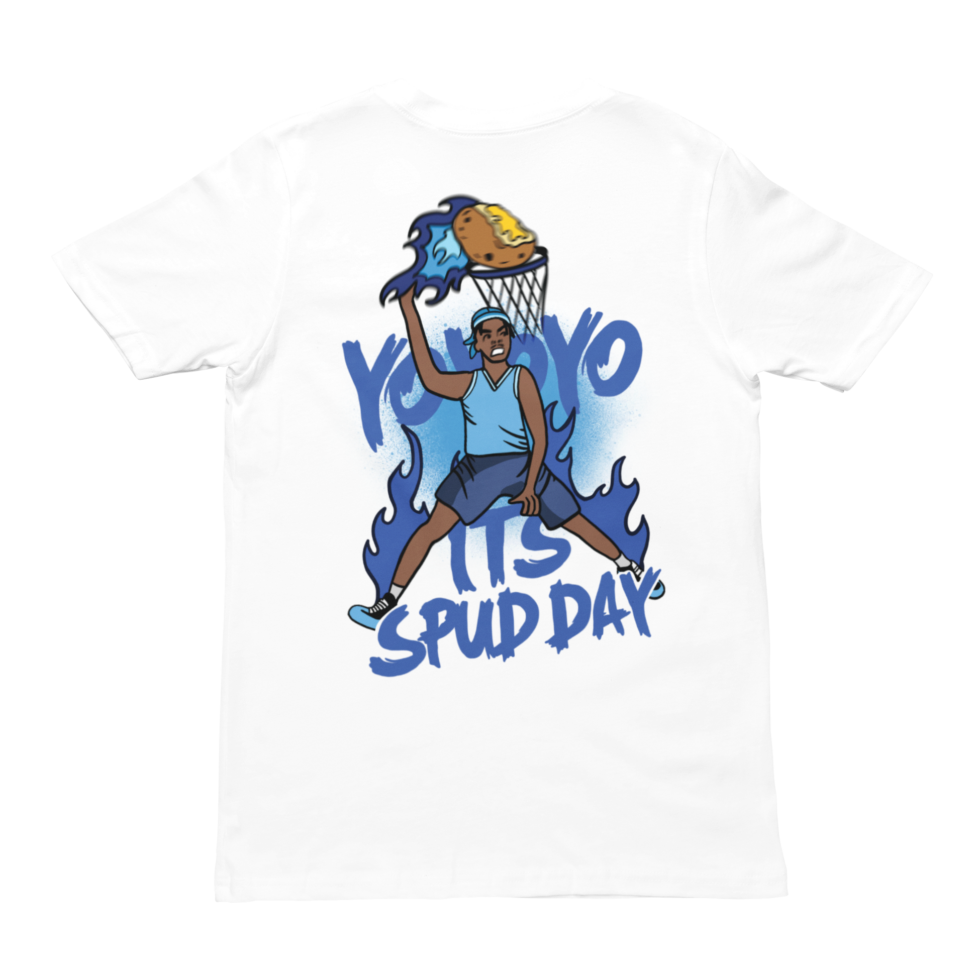 Celebrate every day like it's Spud Day in this fun-loving tee! Featuring the iconic "Yo Yo Yo It's Spud Day" design, this shirt brings instant personality and humour to your wardrobe. Perfect for Spudio fans who want to show their love for everyone's favourite spud character. Soft, comfortable, and ready to turn heads with its cheeky vibe. Whether you're heading out with mates or just keeping it casual, this tee delivers laughs and style in equal measure. Get yours and spread the Spud Day energy!