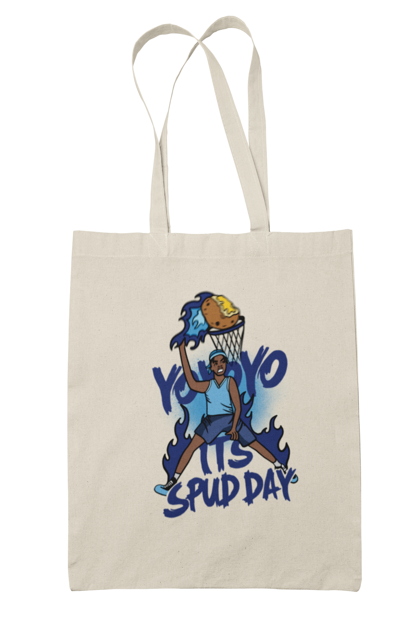 Carry your essentials in style with the YO YO YO Spud Mobile Tote Bag – the ultimate accessory for fans of the legendary Spudigi! This roomy canvas companion features bold, eye-catching graphics that celebrate the iconic spud mobile culture. Perfect for shopping, festivals, or just showing off your love for all things quirky and fun. Durable handles and spacious interior make it practical for everyday adventures, while the cheeky design ensures you'll turn heads wherever you go. A must-have for collectors and Spudigi enthusiasts!
